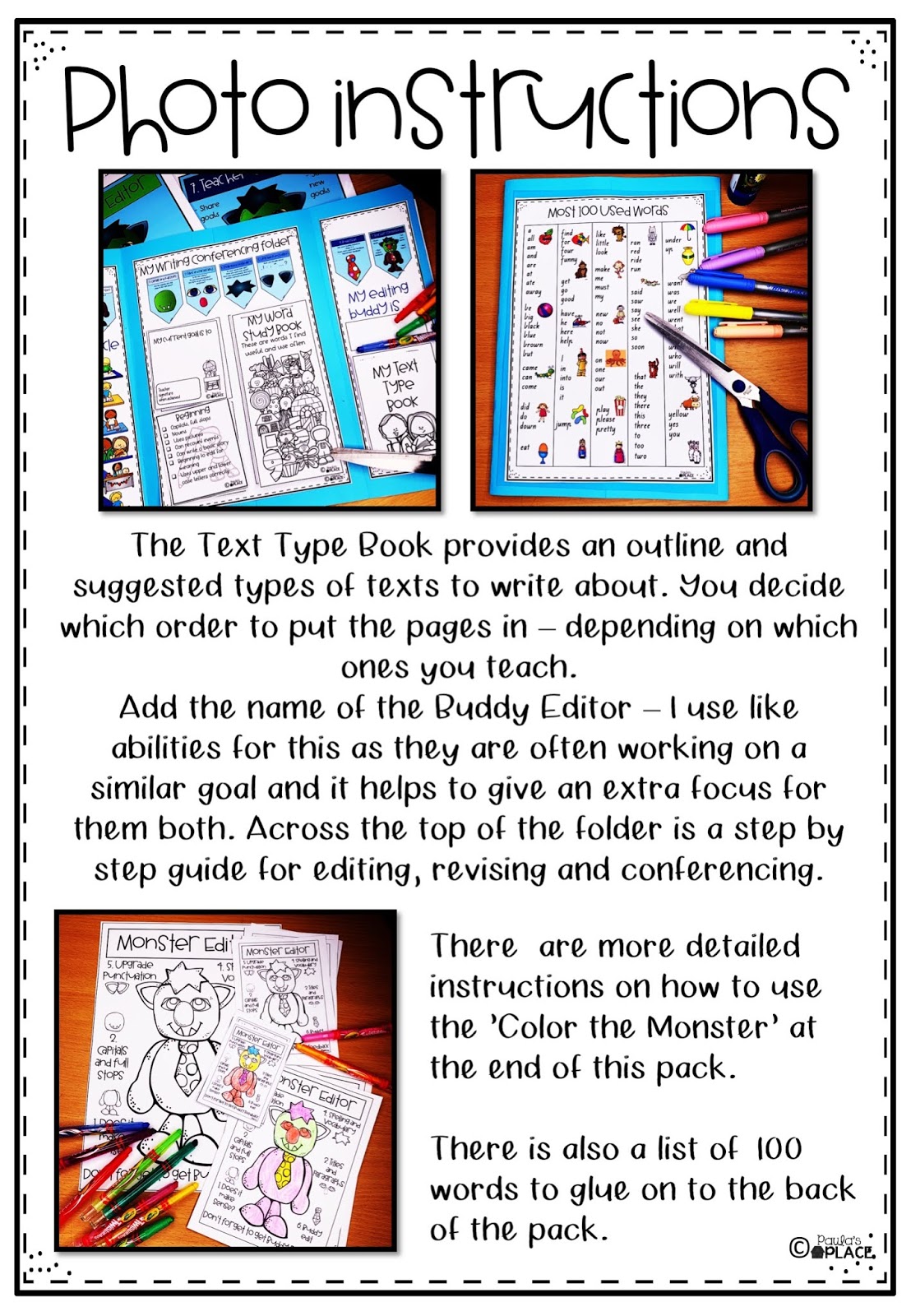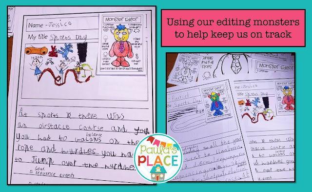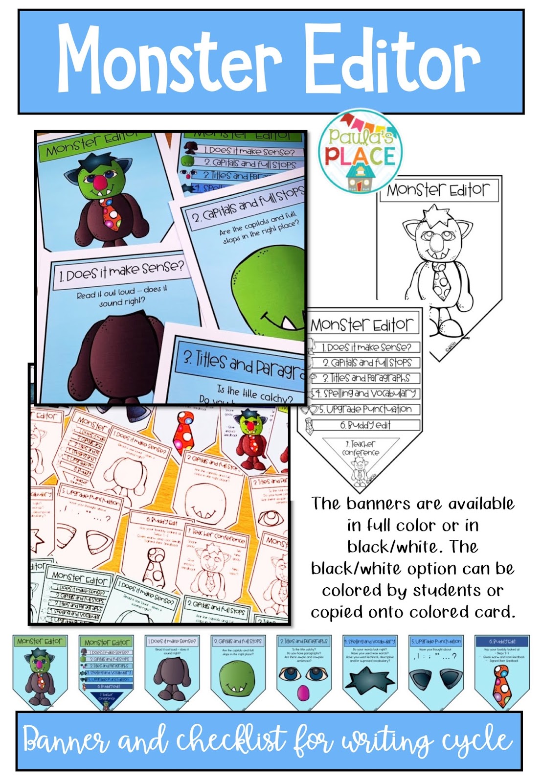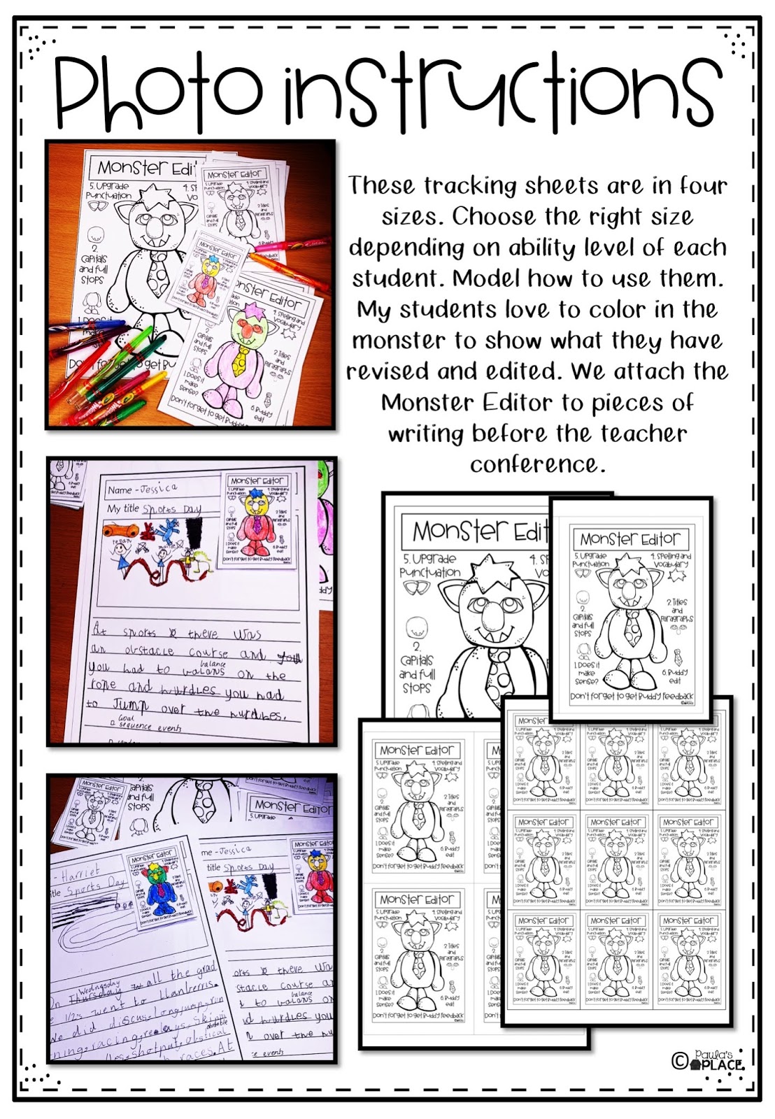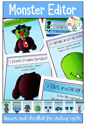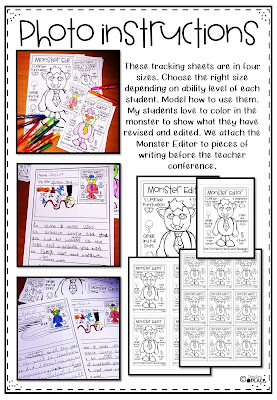 I have created what we call our Monster Editor. My students color in certain parts of him as they move through the editing and revising cycle.
